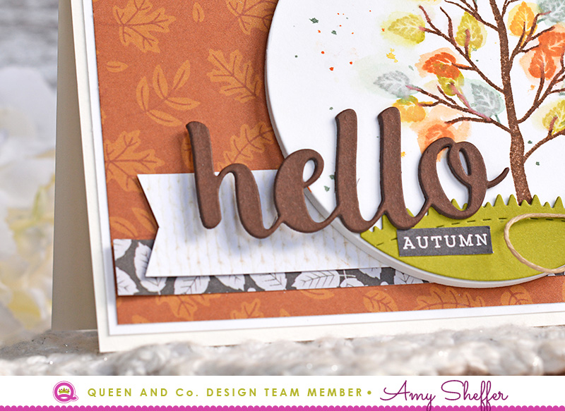 I added a sentiment by mixing a "hello" die-cut and the word "autumn" that I cut out of a piece of patterned paper. The "hello" die I used here is part of the Heart Throb Kit.