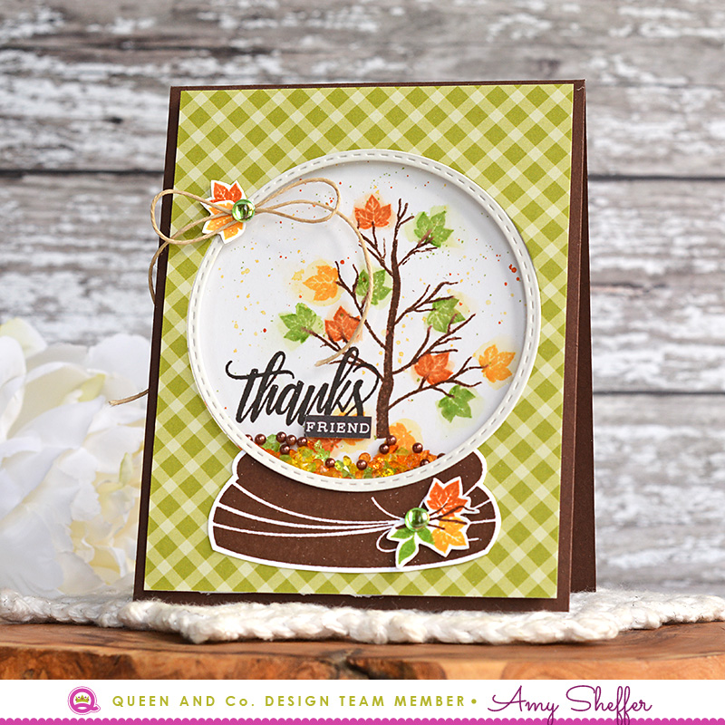 Hi all! Amy Sheffer here to help introduce the super clever Snow Globe Kit! I love that this kit includes stamps and supplies for both fall and winter cards. Today I'm sharing two fall cards.