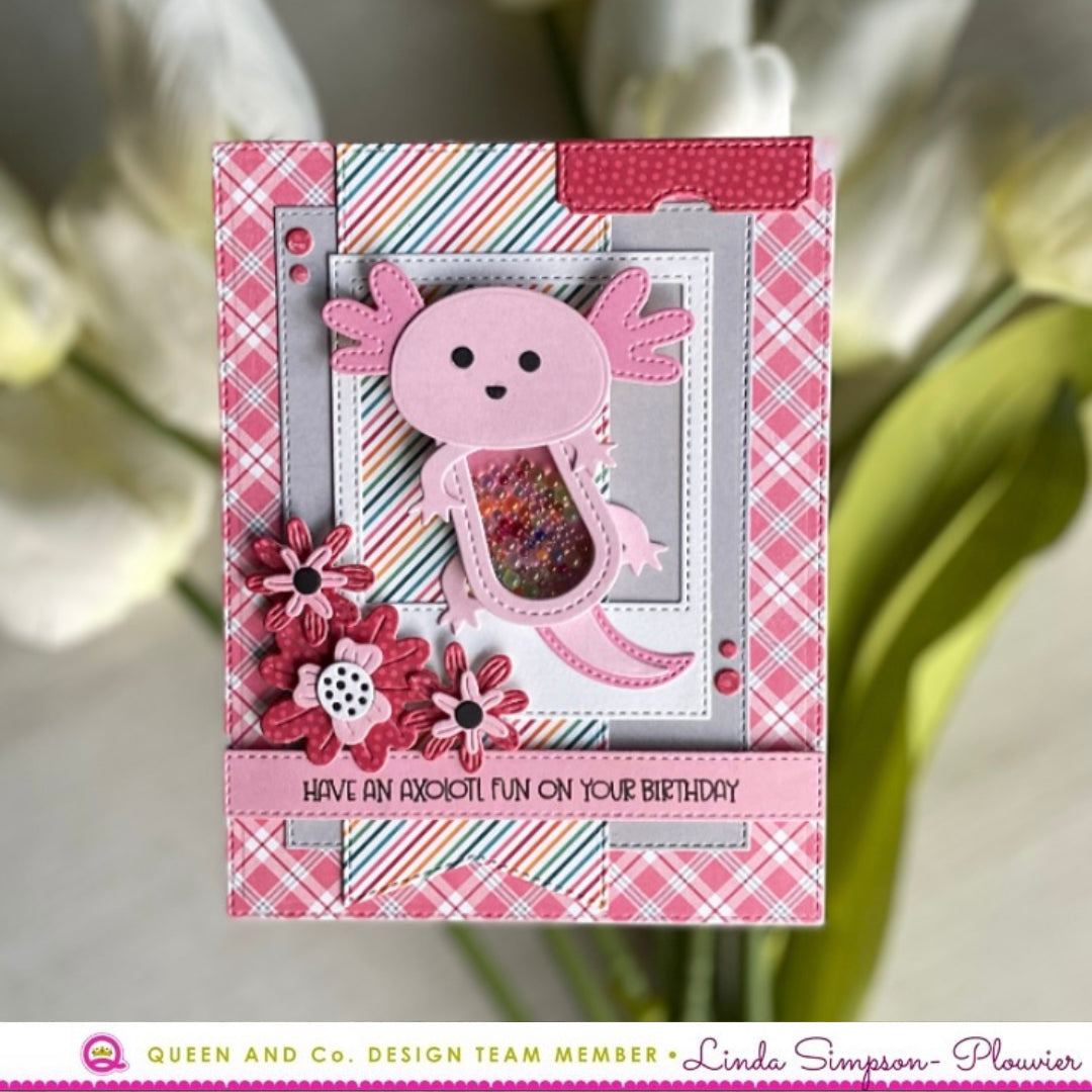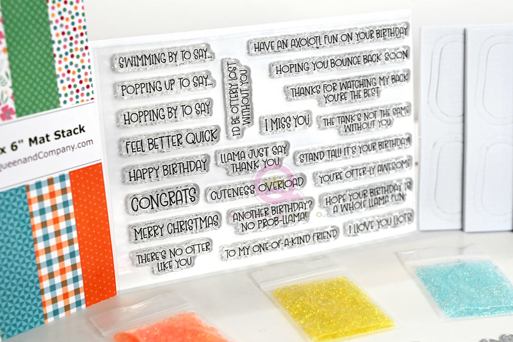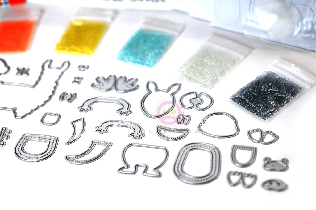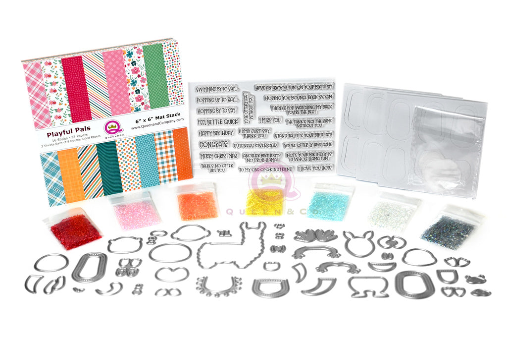 Kit Includes: 40 steel dies, 6x6 paper pad, 7 toppings, 4x6 stamp set and18 foam/acetate shakers.