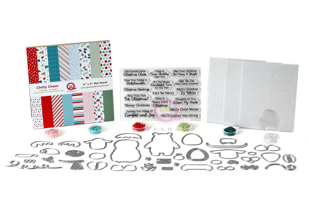 Kit includes 38 dies, 4x6 stamp set, 6x6 paper pad, 18 foam/acetate shakers, 6 toppings. This kit INCLUDES the outline die.